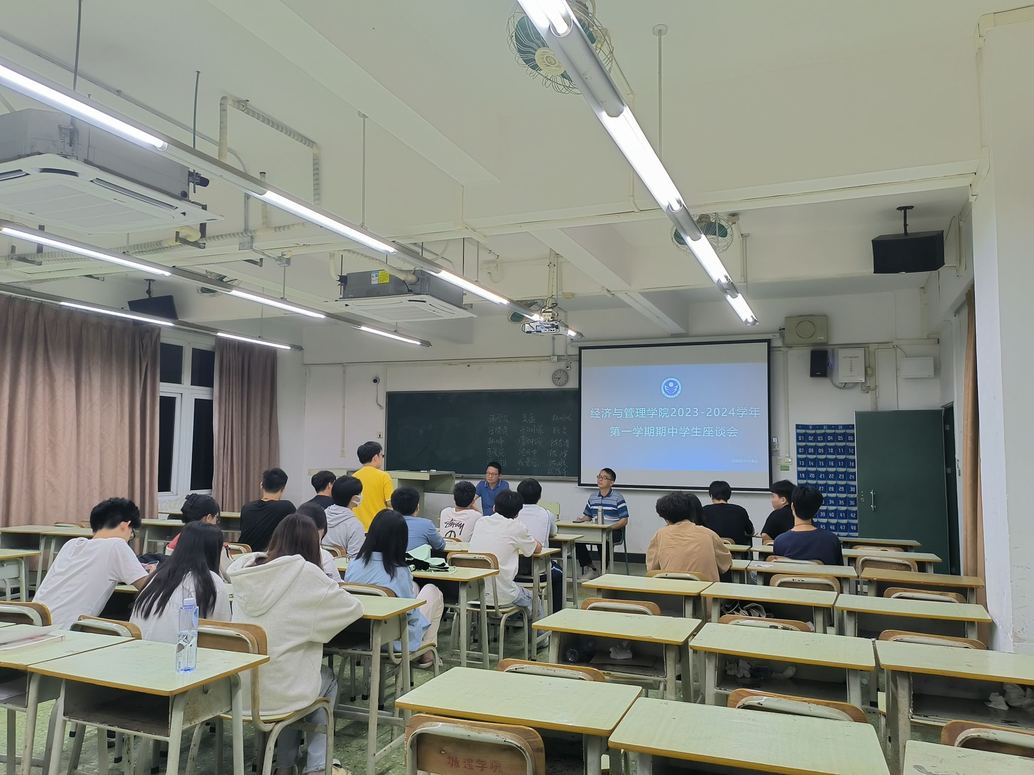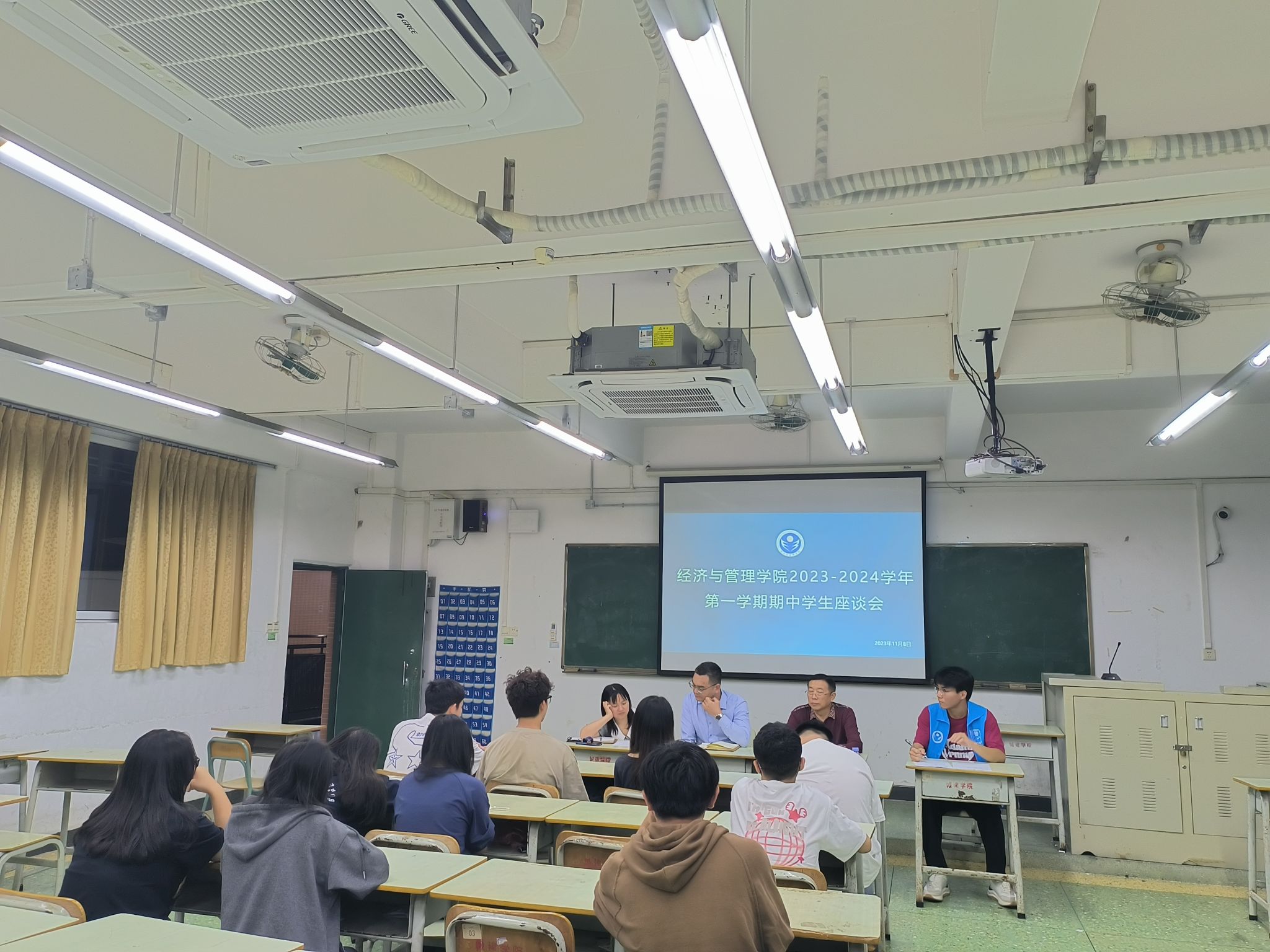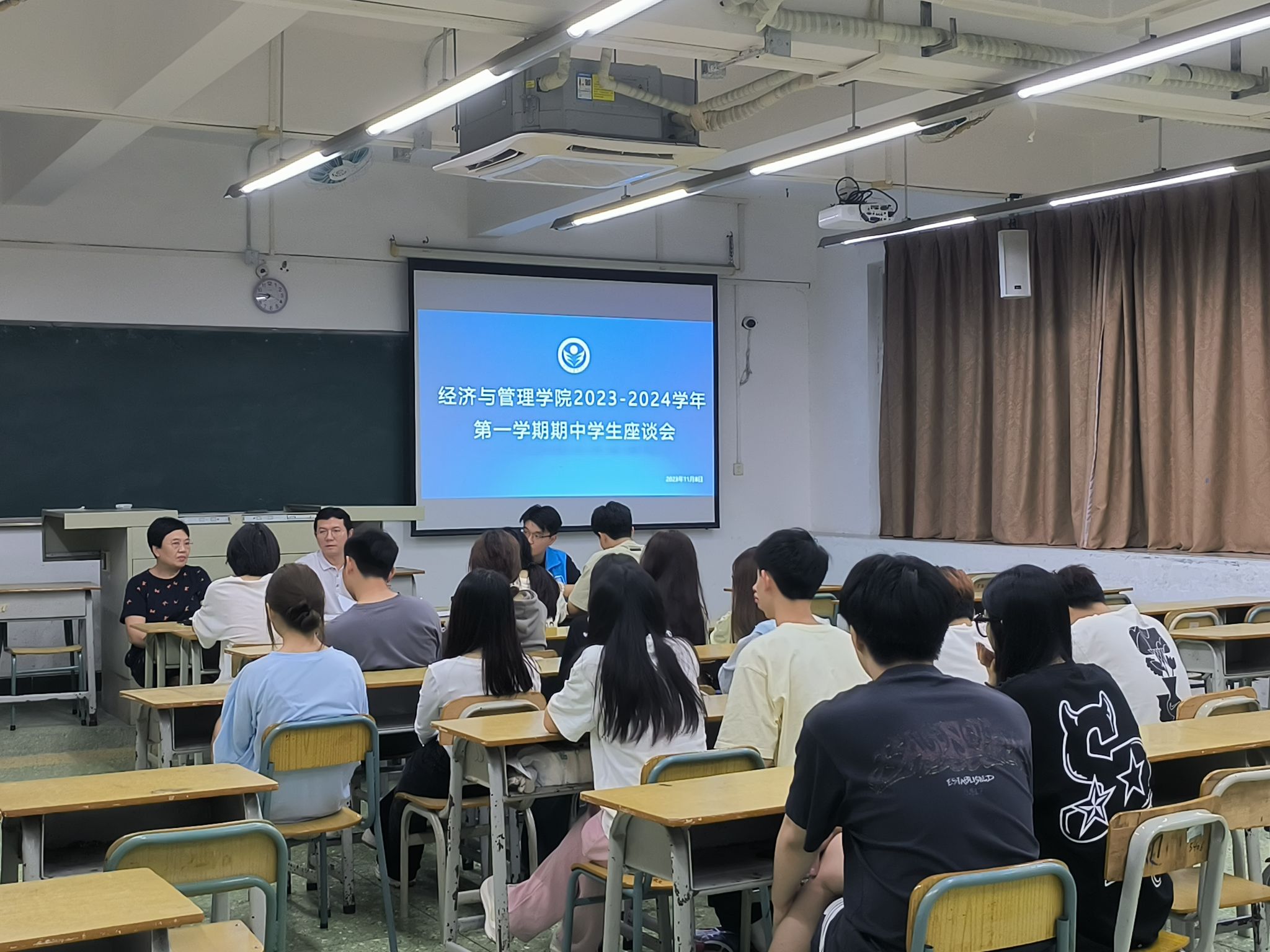 为进一步提高人才培养质量,营造积极向上的教学氛围和学习氛围,太阳成tyc7111cc于11月8日晚在人文艺术楼召开了2023-2024学年第一学期期中员工座谈会。太阳成tyc7111cc经理沈华艳,副经理刘静、张珊,办公室主任陆伟林,教研室主任、学院教学质量评价组成员以及来自2021级、2022级和2023级的班级员工代表参与了此次座谈会。座谈会以专业班级为单位,分6个会场同时举行,由各教研室主任主持,学院领导分别参加了对口联系教研室的会场。