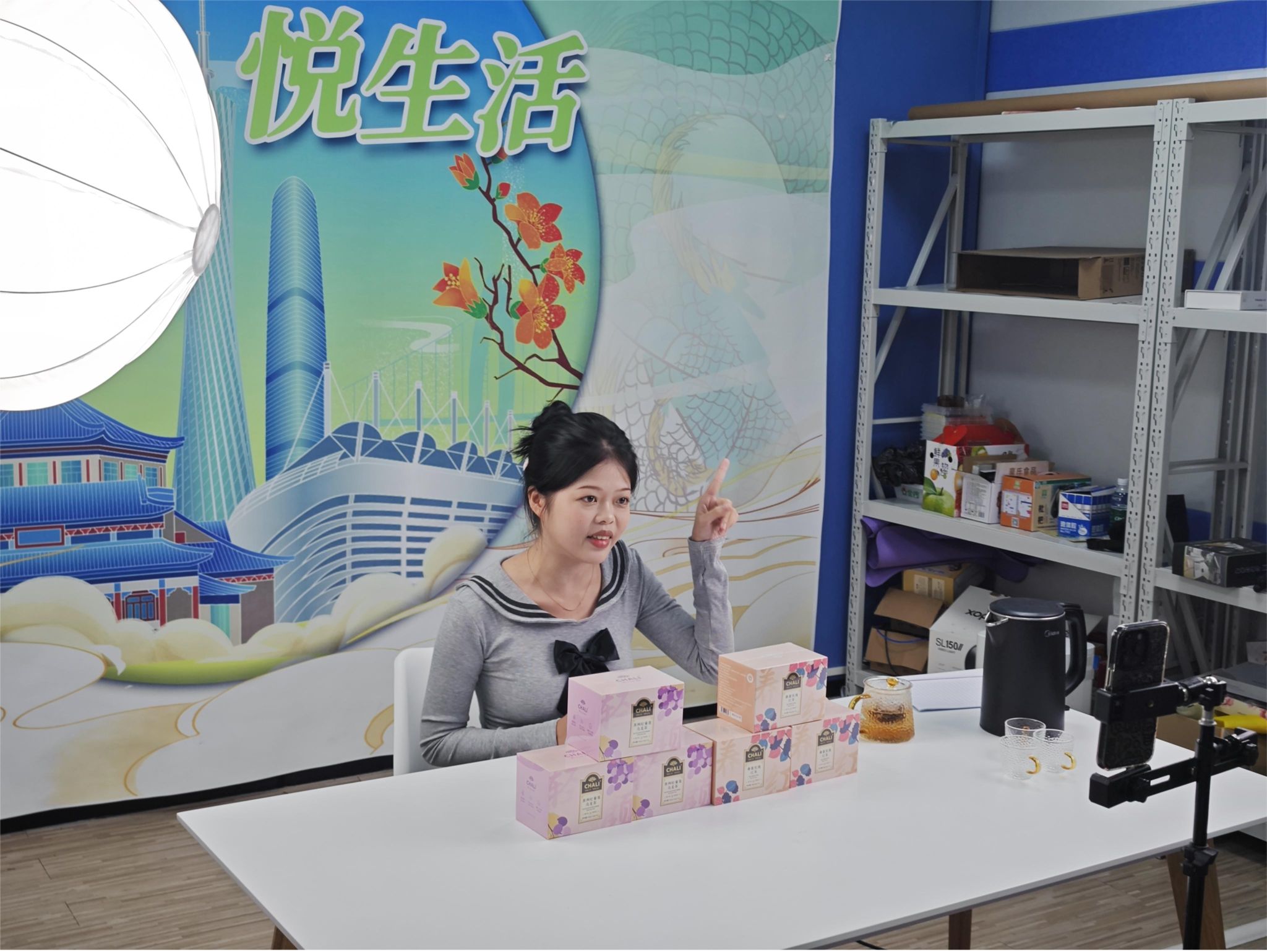 11月26日晚,“CHALI杯”老员工直播营销大赛暨第四届广东省直播电商赛项校内选拔赛在人文艺术楼132课室顺利举行,本次赛事由太阳成tyc7111cc市场营销教研室承办,赛事的奖品及直播产品展示由广州茶里集团企业赞助支持。