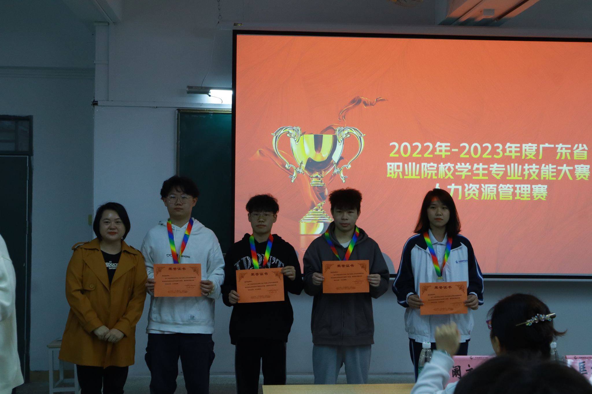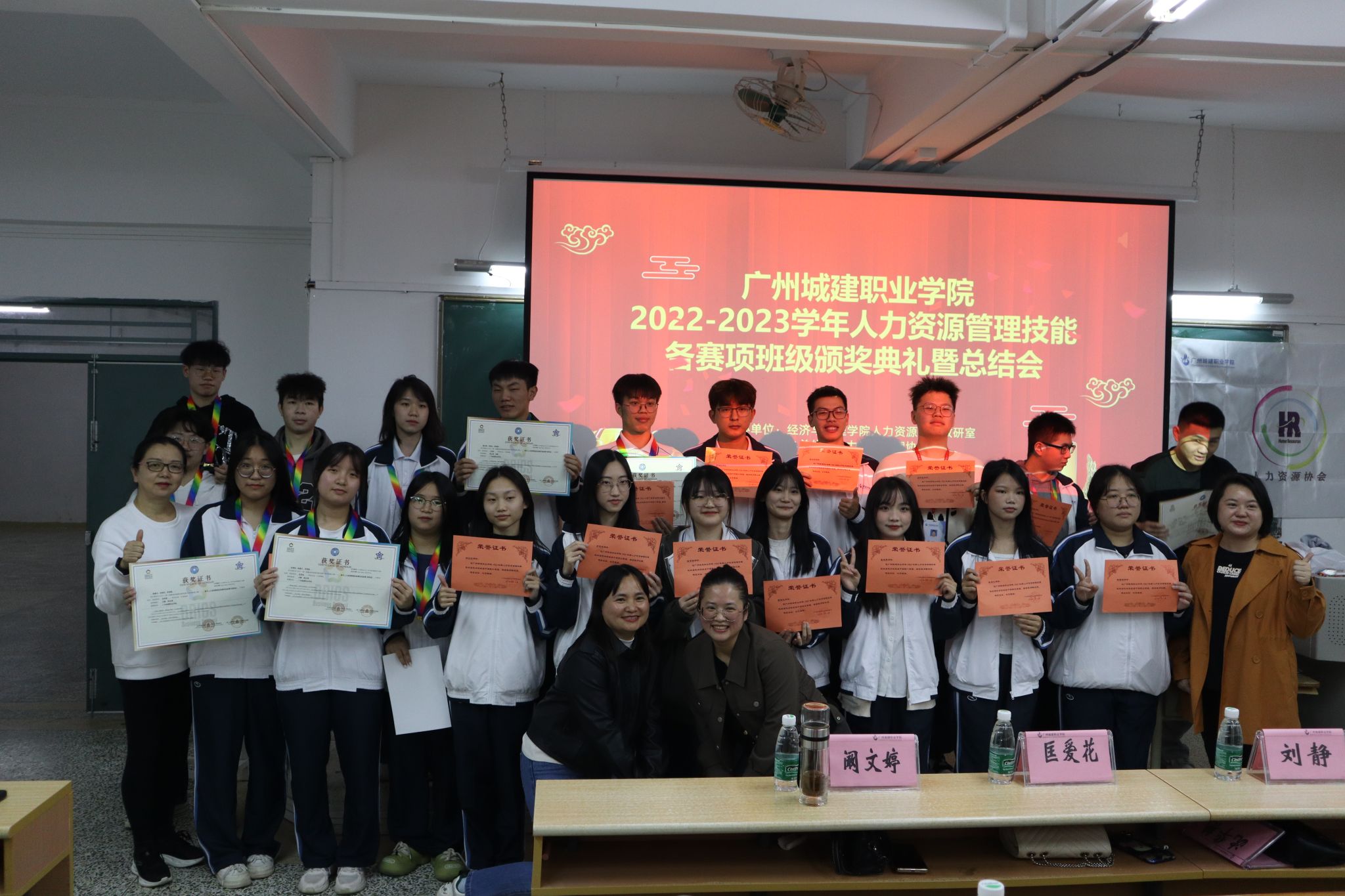 2023年12月7日,太阳成tyc7111cc开展人力资源管理技能赛项颁奖典礼暨总结会。学院副经理刘静、人力资源教研室主任匡爱花、人力资源教研室老师阚文婷以及人力资源协会的指导老师陈志清出席了此次大会。此次活动由人力资源管理协会承办,旨在表彰在人力资源管理技能赛项中表现优异的同学们。