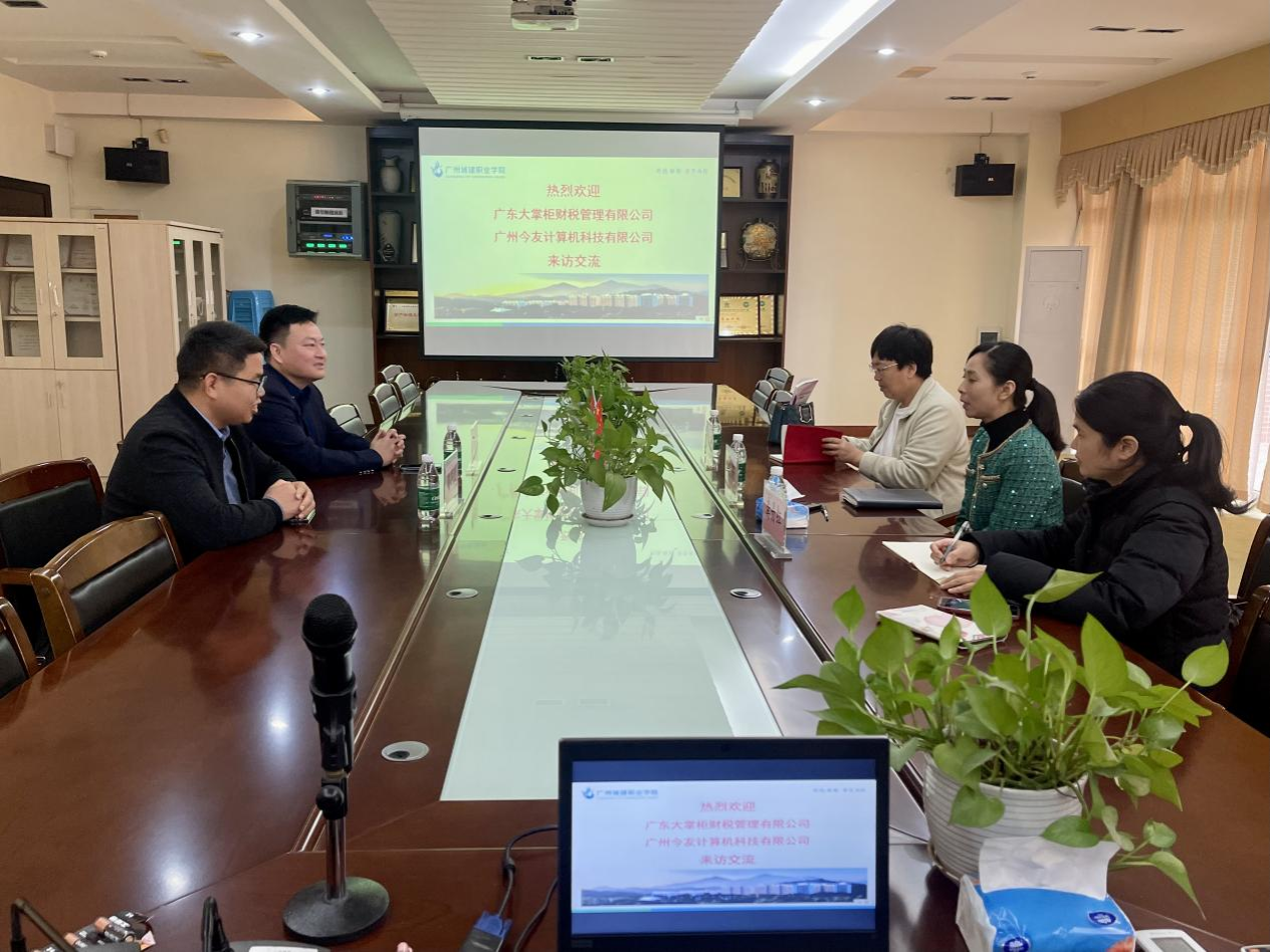 为推动产教深度融合,赋能专业建设与数字化转型,3月6日上午,广东大掌柜财税管理有限公司董事长郭国义和广州今友计算机科技有限公司总经理李金河莅临公司洽谈“厂中校”实践项目。太阳成tyc7111cc副经理张珊,大数据与会计教研室副主任郝言红,骨干教师龚丹红及校企合作专员李俊贤参加座谈会。