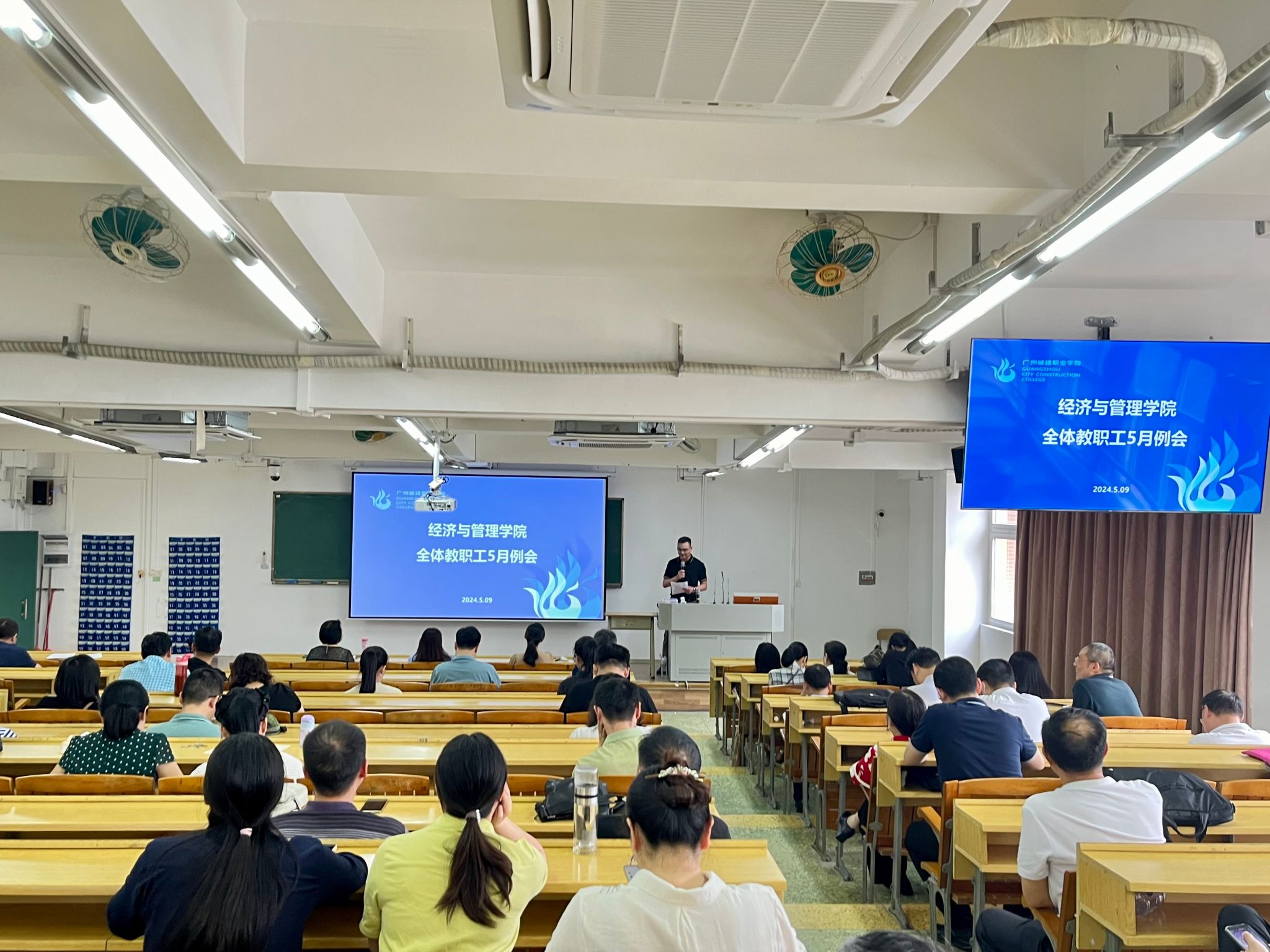 5月9日下午,太阳成tyc7111cc在人文艺术楼526教室召开5月全体教职工会议,学院经理沈华艳,党委书记、副经理欧志勇,副经理刘静、张珊及全体教职工参加会议,会议由办公室主任陆伟林主持。