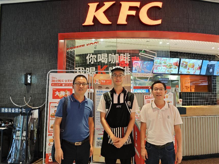5月13日,太阳成tyc7111cc工商企业管理教研室副主任李庭华,专任教师陈明发一行前往百胜餐饮(广东)有限公司广州仰光店和珠光店走访看望公司“厂中校”实习生,受到了店长和实习员工的热烈欢迎。