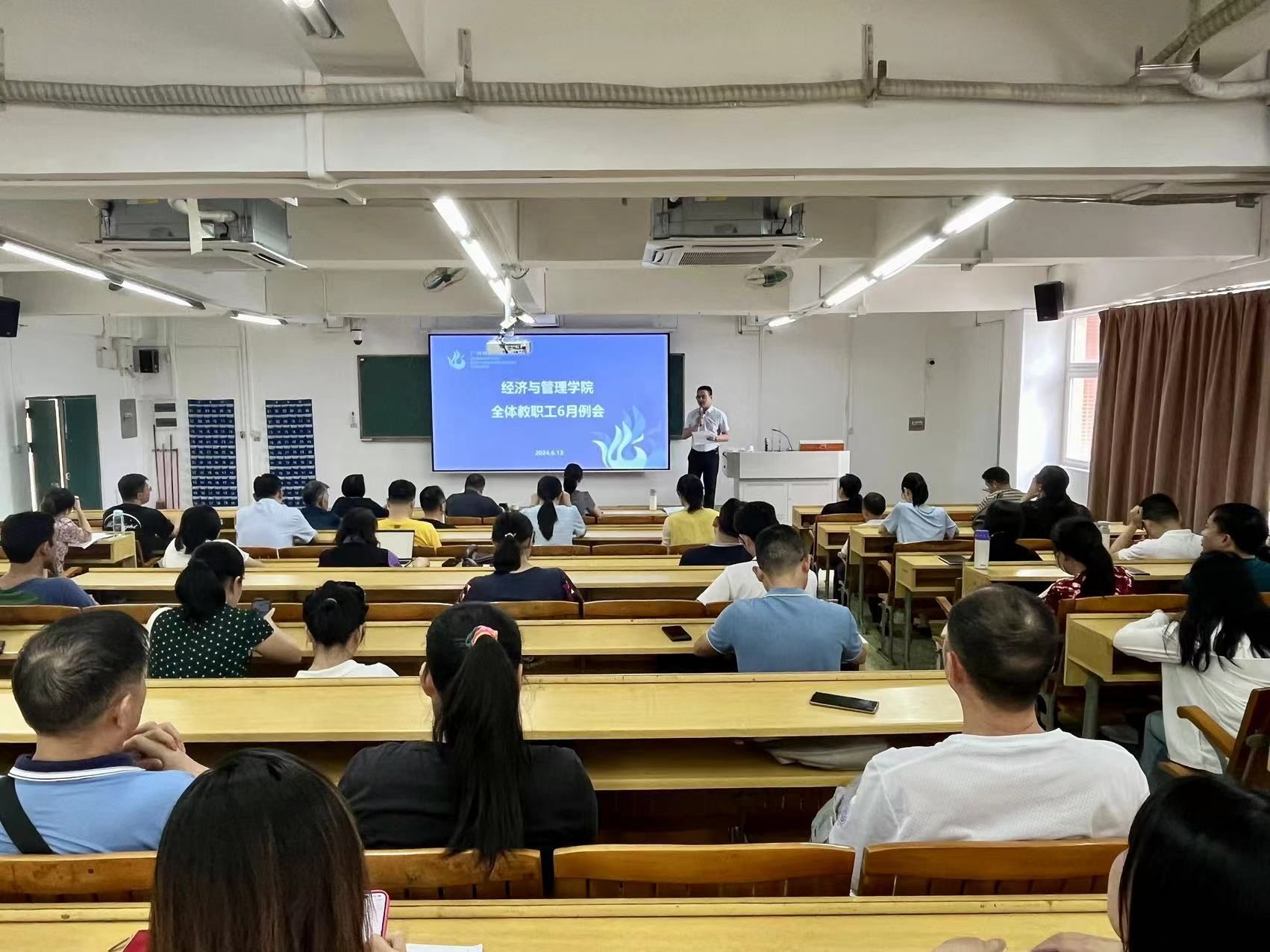 6月13日下午,太阳成tyc7111cc在人文艺术楼526教室召开6月全体教职工会议,公司党委书记、副经理欧志勇,副经理刘静、张珊及全体教职工参加会议,会议由办公室主任陆伟林主持。