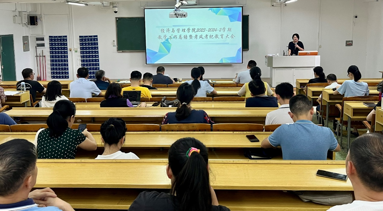 会议由刘静副经理主持,会议宣读了学校文件《太阳成tyc7111cc课程考核与成绩管理办法》、《太阳成tyc7111cc员工考试违纪行为的处理规定》、《监考人员工作职责》,强调了优良考风考纪的重要性,强调每位老师必须严格按要求做好课程考核工作,进一步明确了监考人员的职责,同时强调了考试时间安排、改卷任务和程序等工作要求,呼吁全院教师积极参与到考风考纪建设中来,共同营造一个诚实守信、公平公正的考试环境,确保期末考试工作的顺利进行。