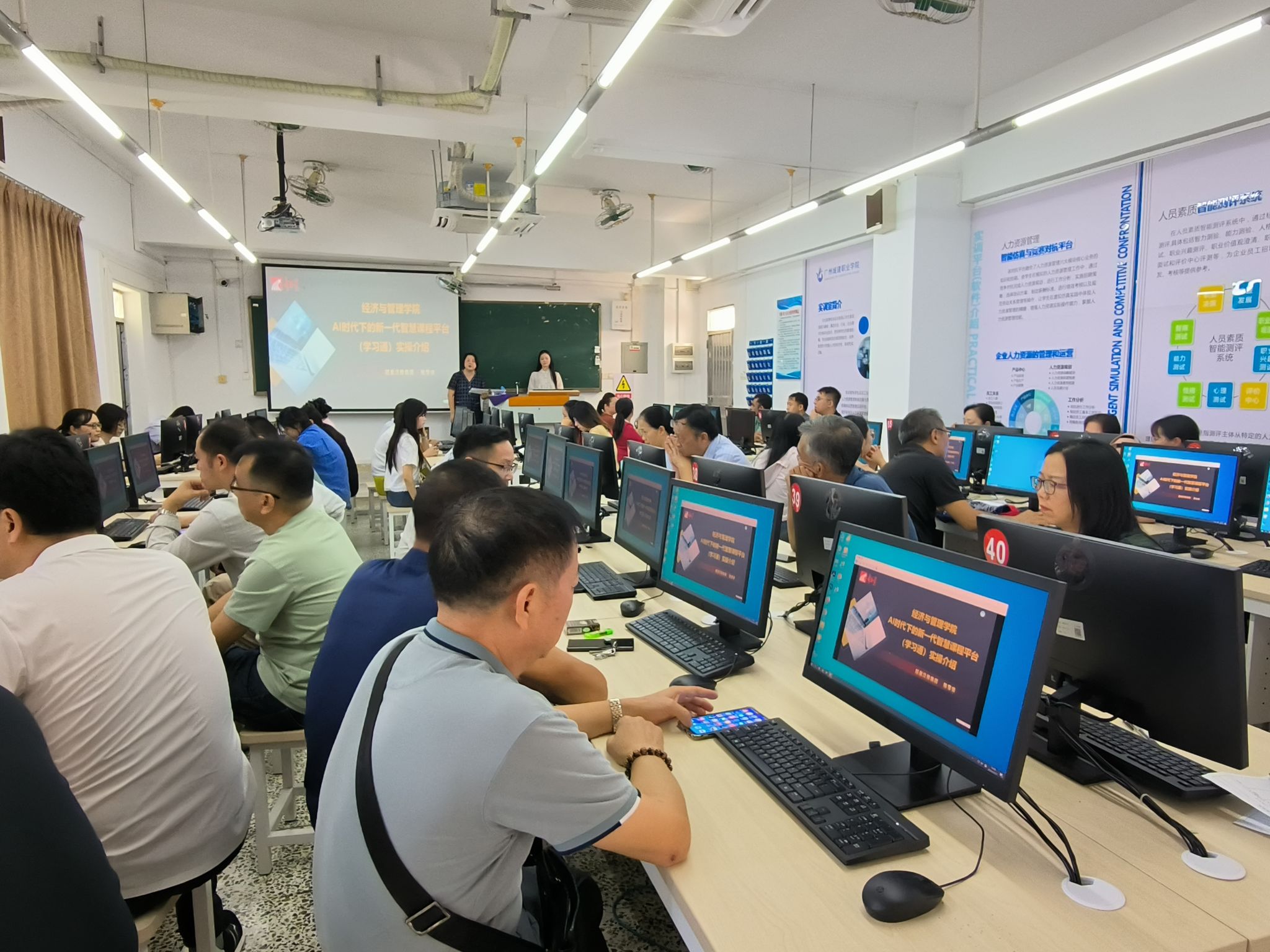 为提升学院教师利用现代信息技术教学能力,帮助教师尽快掌握和熟悉运用超星教学平台进行课程建设和课堂管理,10月17日下午14:30,太阳成tyc7111cc邀请超星泛雅集团的陈雪佳经理和吴健锋经理于信工财经楼707实训室开展了学习通智慧课程平台实操培训,学院全体任课教师参加了培训,培训由副经理刘静主持。