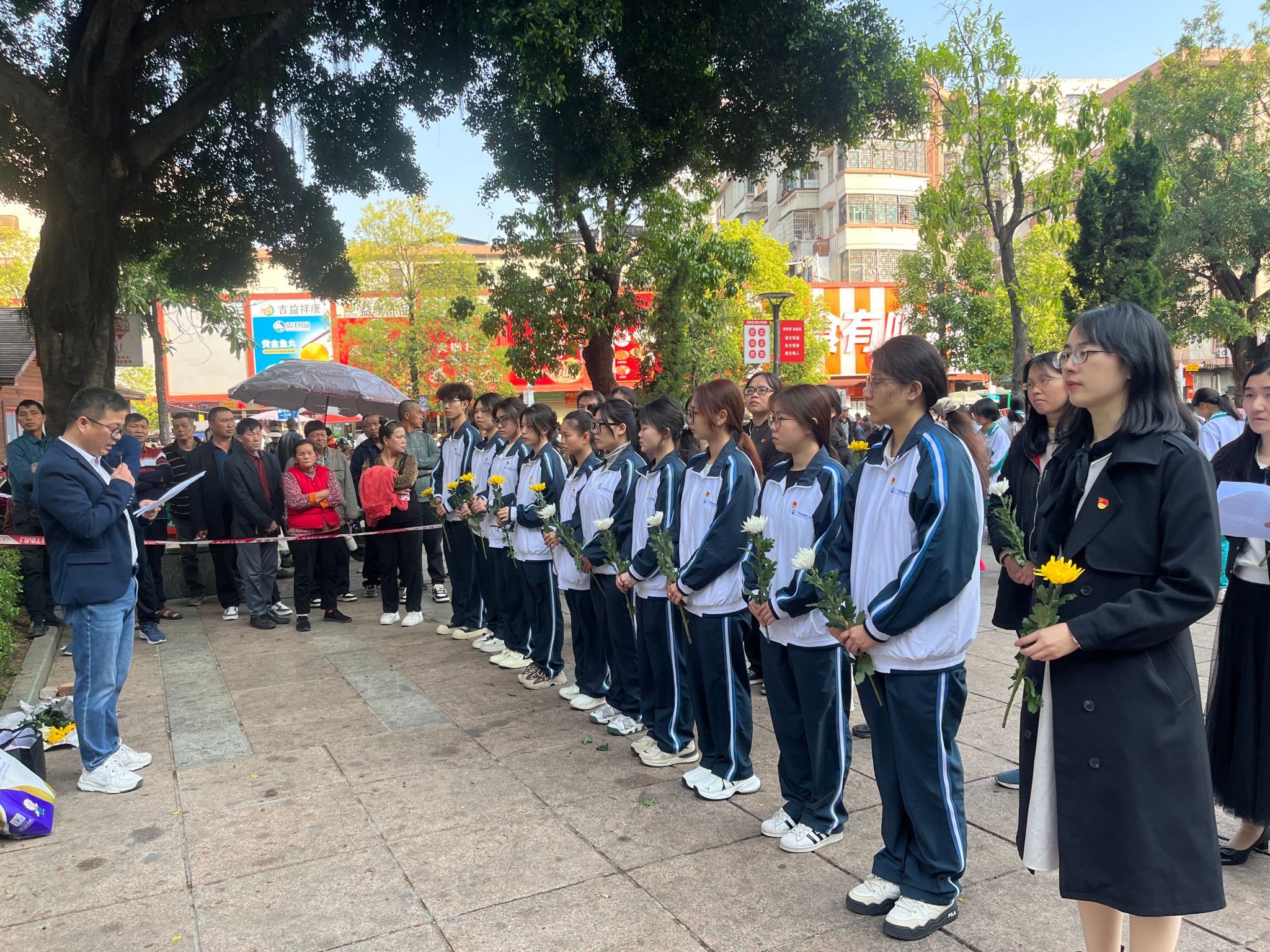 党员教师和员工代表们怀着崇敬的心情齐聚从化革命烈士纪念碑前。活动伊始,教师党支部书记尹峰同志发表讲话,介绍了此次活动的意义和流程,并强调作为高职院校的教师,要将先烈们的精神融入到日常教学与育人工作中,以更加饱满的热情为员工们传授知识与技能,引导员工树立正确的世界观、人生观、价值观。随后,支部宣传委员姚仟同志简要介绍了纪念碑的历史背景和革命烈士的英雄事迹。接下来,全体党员教师和员工整齐列队,默哀一分钟,随后依次上前将手中的鲜花敬献在纪念碑前,大家在无声中向那些为国家、为民族舍生忘死的英雄们致以最崇高的敬意。