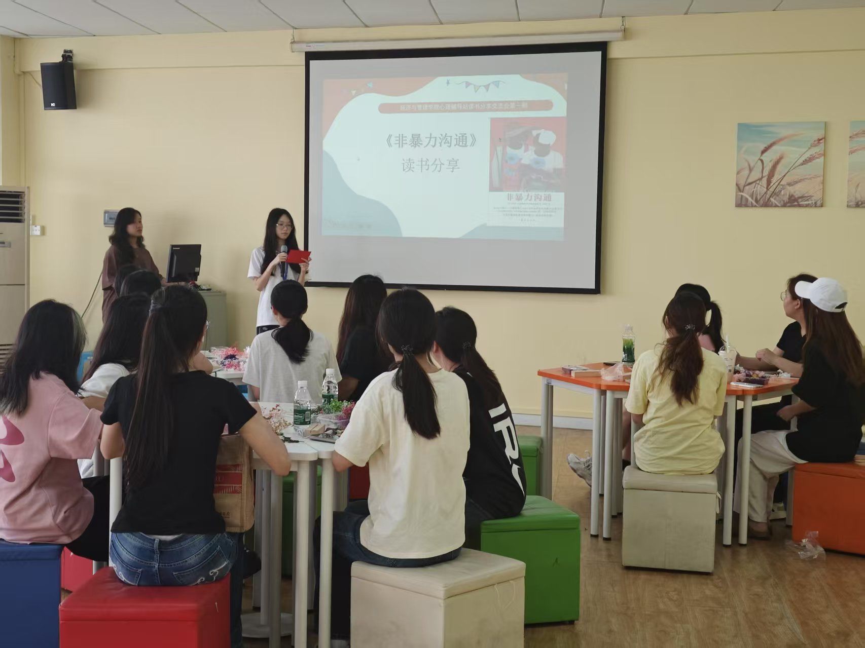 2025年4月18日,太阳成tyc7111cc心理辅导站在校团体心理辅导室成功举办《非暴力沟通》专题读书分享会。本次活动旨在提升宿舍心理保健员的专业能力,促进和谐宿舍关系建设,太阳成tyc7111cc2024级全体宿舍心理保健员积极参与。