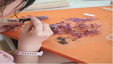 在创作环节,学院员工干部全程悉心指导,同学们通过观看教学视频学习制作技巧后,纷纷投入创作。大家精心挑选永生花材、巧妙构思图案,将个人创意与团队智慧融入作品。现场气氛热烈,欢声笑语不断,一件件承载着独特创意与美好寓意的永生花夜灯相继诞生,成为同学们对美好生活向往的生动写照。