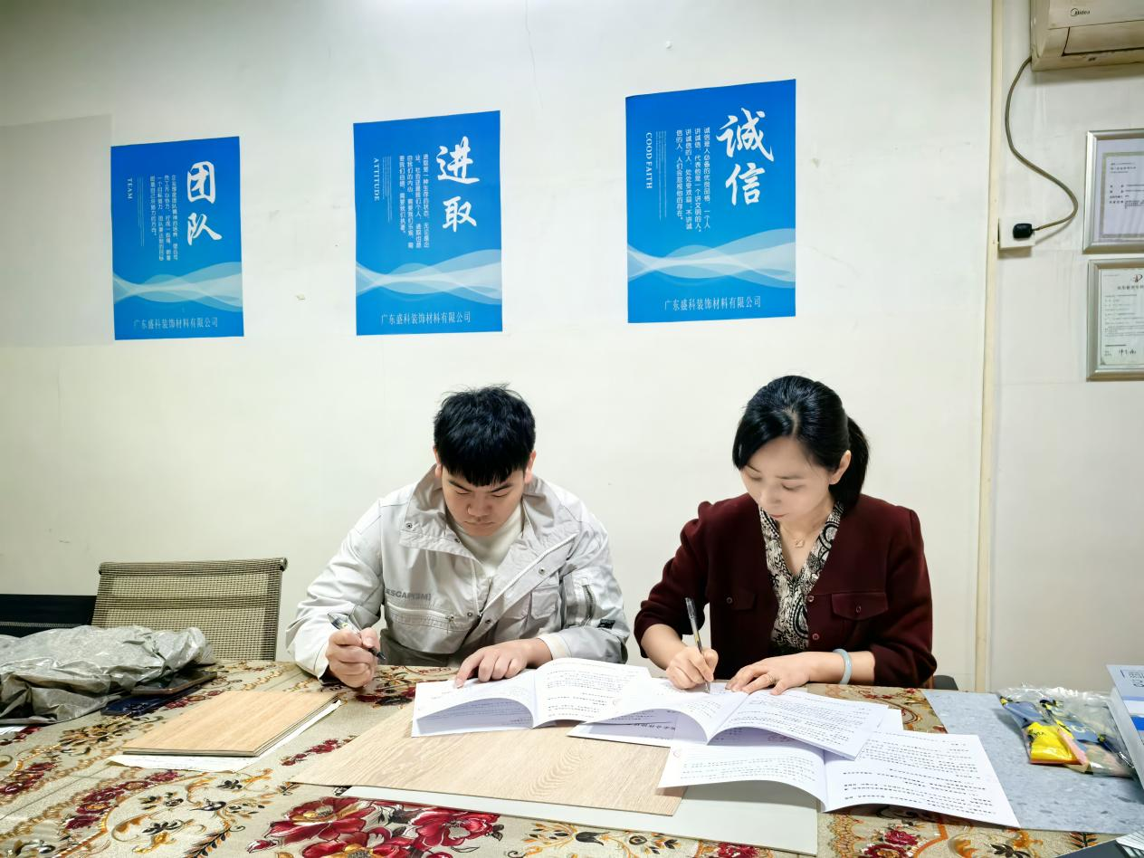 座谈会上,广东浩邦科技董事长冯浩明对校方到访表示热烈欢迎,并分享了企业在PVC地板材料研发领域的创新实践案例。他指出:“当前市场对兼具商业思维与技术应用能力的复合型人才需求迫切,建议院校在教学中融入更多实战场景,通过项目化教学激发员工的创新潜能。”企业方还通过产品展示、案例讲解等形式,向师生团队展示了近年来在环保材料研发、数字营销等领域的创新成果,为员工提供了直观的行业认知体验。