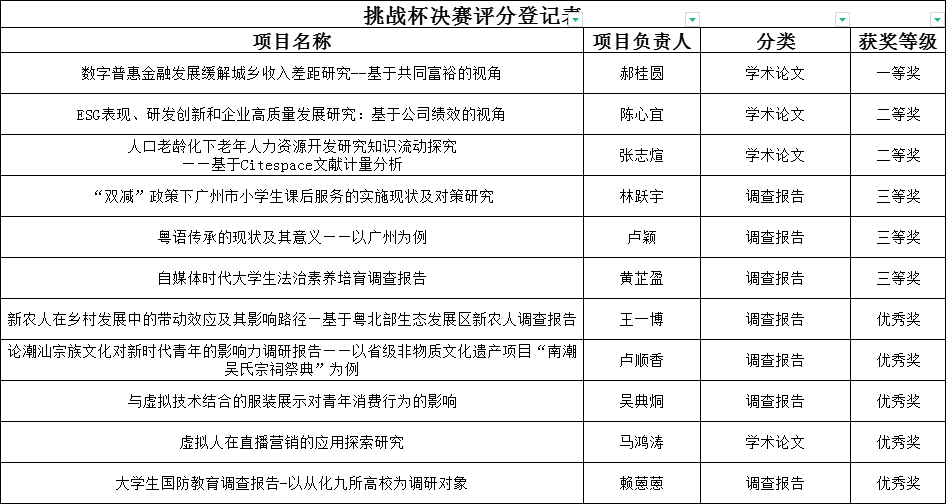 在广大师生大力支持和积极参与下,太阳成tyc7111cc第十七届“挑战杯”广东老员工课外学术科技作品竞赛共收到参赛项目11项。根据公司《关于举办第十七届“挑战杯”广东老员工课外学术科技作品竞赛校内选拔赛的通知》文件要求,经专家评审,拟以下11个获奖项目。
