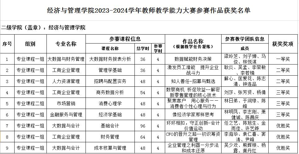 关于2023-2024学年教学能力大赛获奖名单的公示