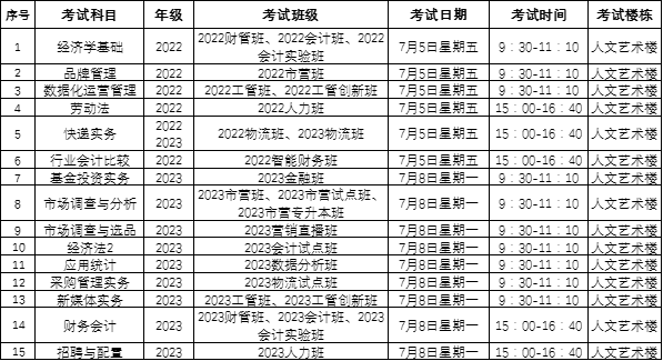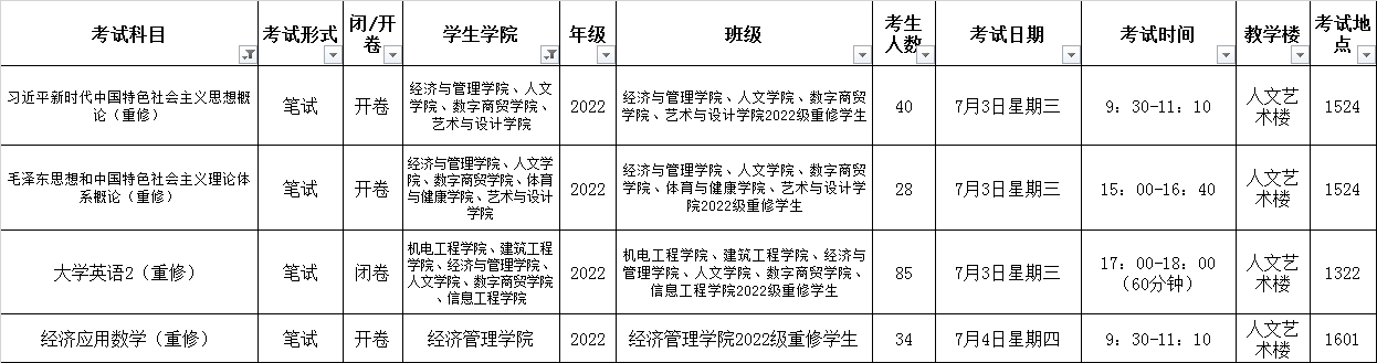 3.考试时间:具体考试时间如下,具体考试安排请详见《附件1:2023-2024学年第二学期期末考试安排表》中的“2022级重修考试安排表19-20周安排23-24-2”。