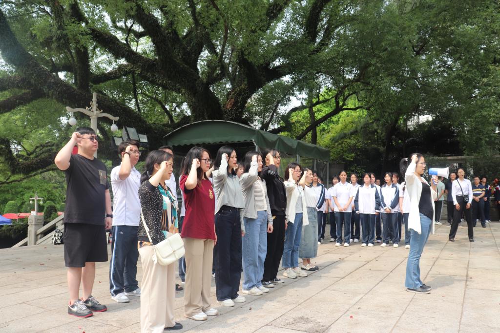 追寻红色足迹,缅怀革命先烈。在广州起义烈士陵园,全体师生庄重肃立在烈士陵园纪念碑下,向革命先辈鞠躬祭拜,敬献鲜花,表达深切缅怀之情;面向党旗,重温入党誓词。随后,全体师生跟随讲解员的步伐,聆听了革命先烈们的英雄事迹,了解了先辈们为中国解放事业奋斗的光辉历程,感受老一辈革命家不畏艰难困苦、无私奉献的革命精神。