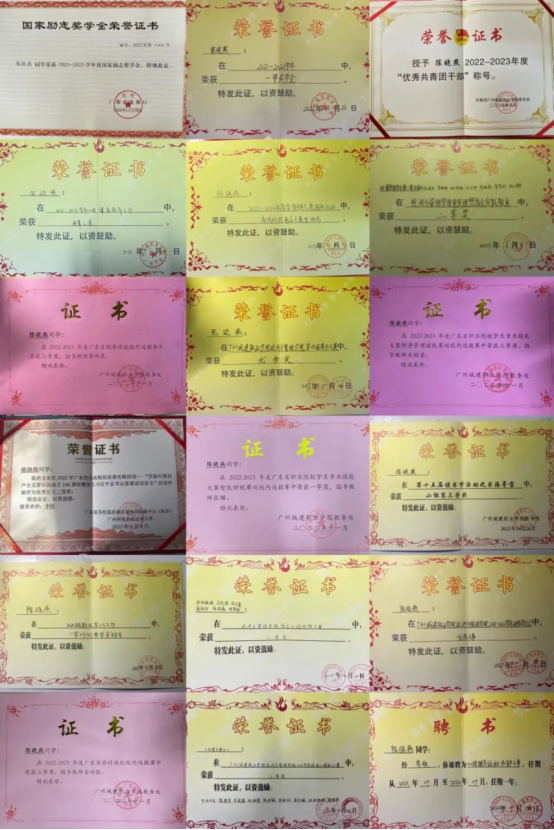 12.2023年6月获得“青春向党,立志成才”第十届励志自强榜样人物称号