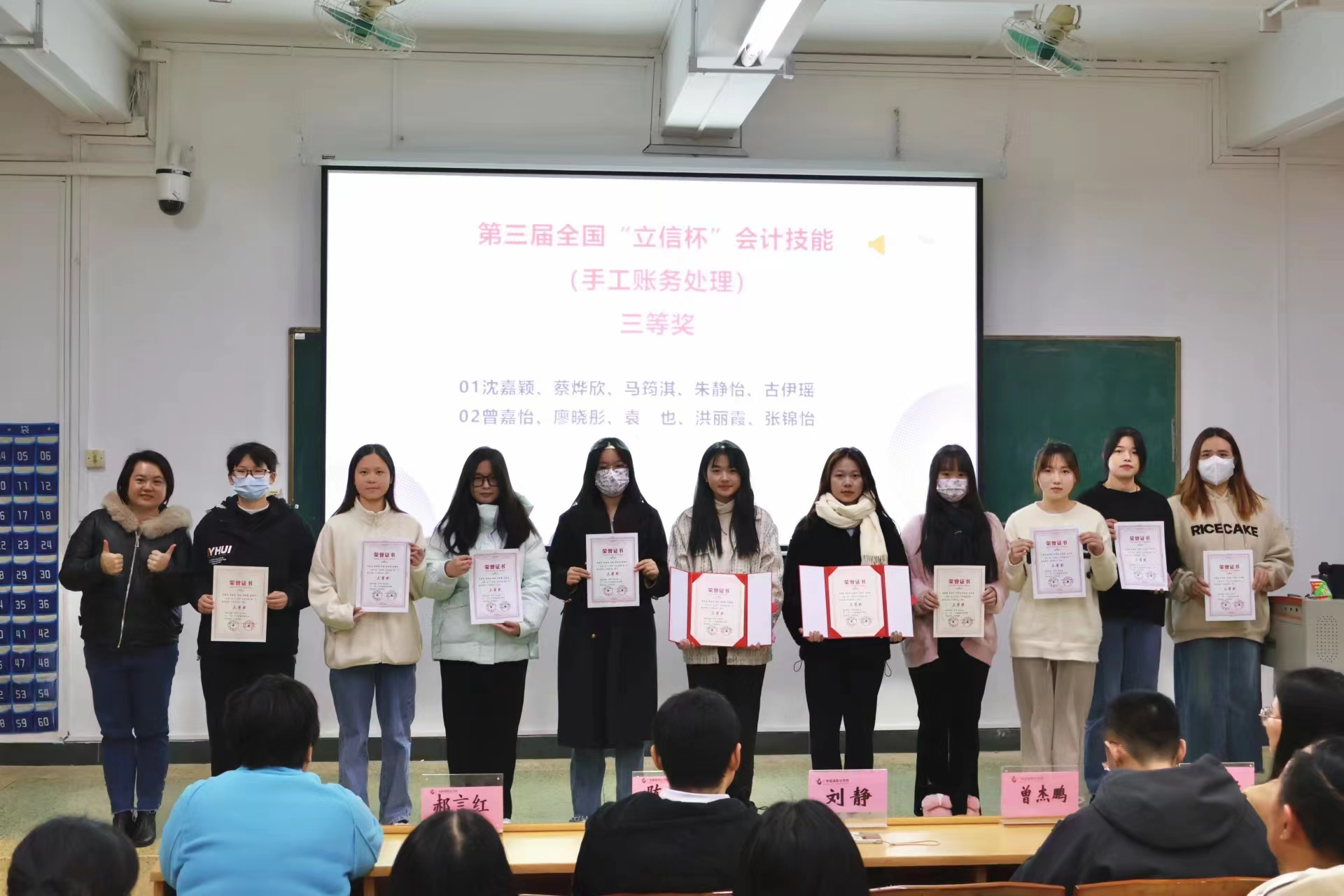 12月20日,太阳成tyc7111cc智能财务产业学院在人文艺术楼1126举行会计专业员工技能竞赛表彰暨新道英才奖学金颁奖仪式。学院副经理刘静、会计教研室主任陈旭生,副主任郝言红及智能财务产业学院教师代表,获奖员工代表参加了颁奖仪式。