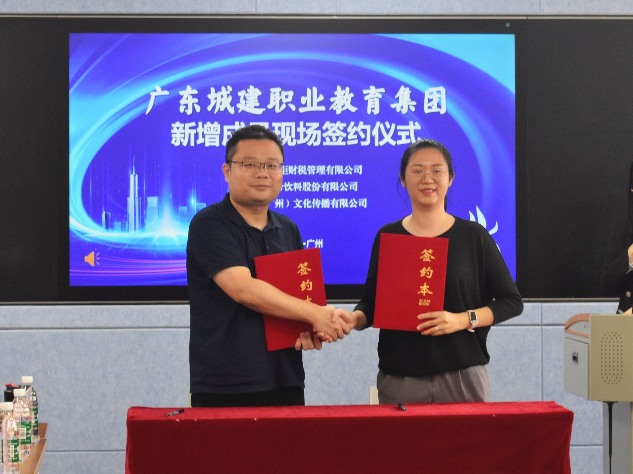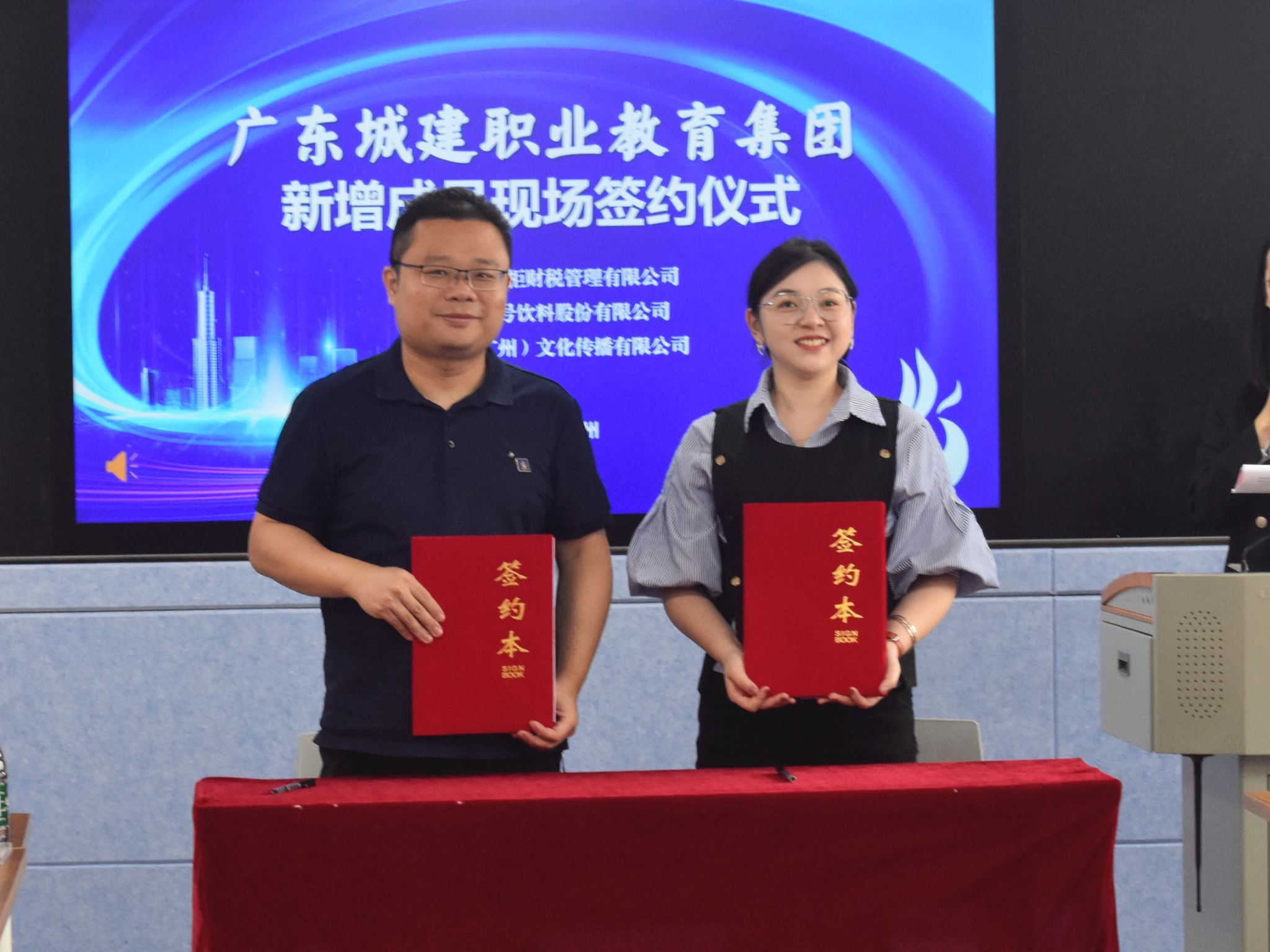会上,科技处副处长苏崇坚代表广东城建职业教育集团分别与广东大掌柜财税管理有限公司、天地壹号饮料股份有限公司、威尔(广州)文化传播有限公司签订战略合作协议。