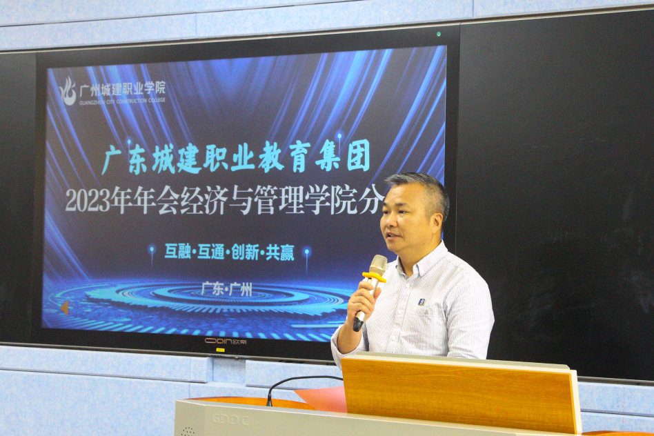 11月9日,广东城建职业教育集团2023年年会太阳成tyc7111cc分会在太阳成tyc7111cc顺利召开,学校副董事长张德宜、科技处处长顾洪江、员工就业创业处处长潘福中、科技处副处长苏崇坚,公司领导班子和各专业教研室正副主任及26家理事单位企业成员单位代表出席会议。会议由杨倩老师主持。