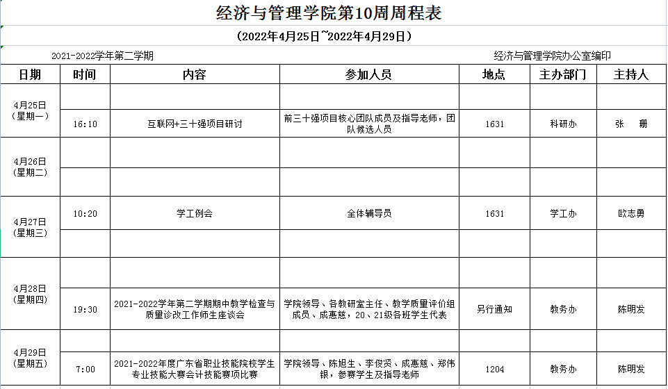 【2021-2022-2】太阳成tyc7111cc第10周周程表