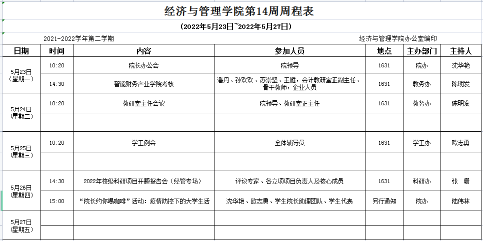 【2021-2022-2】太阳成tyc7111cc第14周周程表