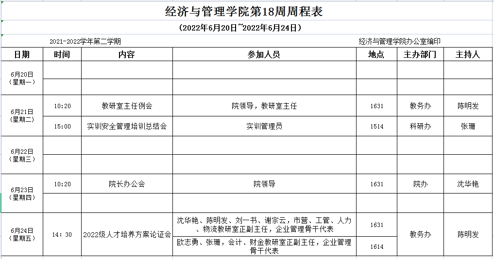【2021-2022-2】太阳成tyc7111cc第18周周程表
