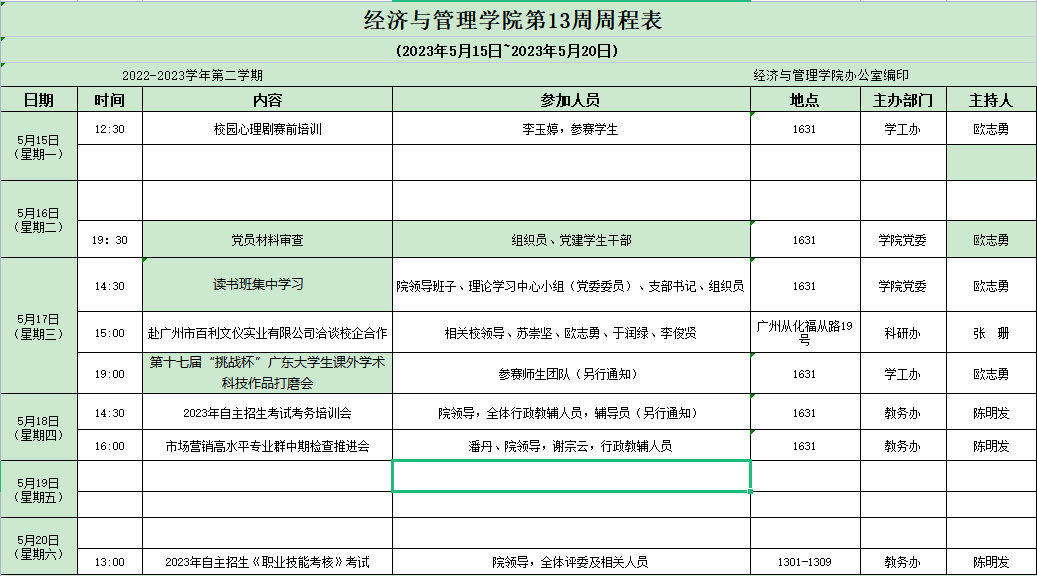 【2022-2023-2】太阳成tyc7111cc第13周周程表