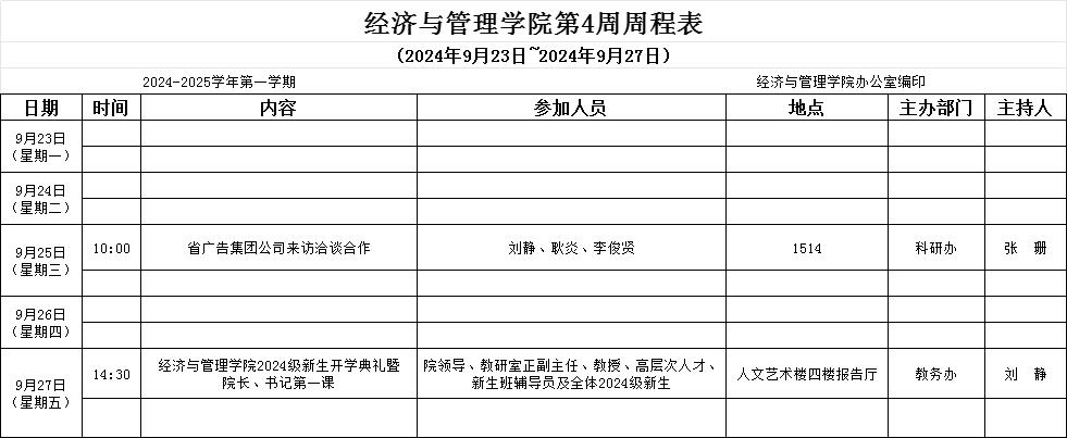 【2024-2025-1】太阳成tyc7111cc第4周周程表